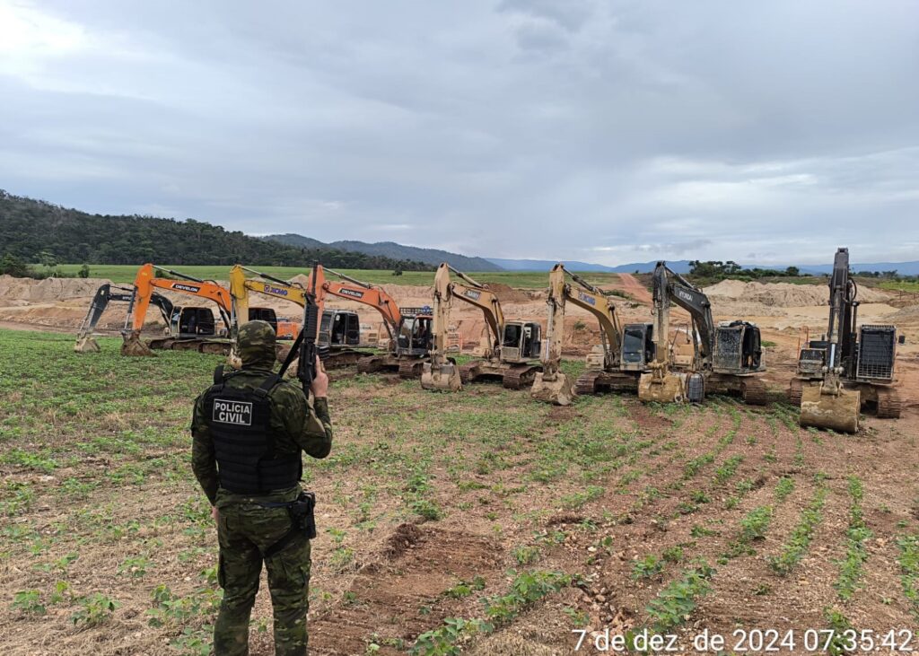Polícia Civil apreende 9 escavadeiras usadas em garimpo ilegal em propriedade rural